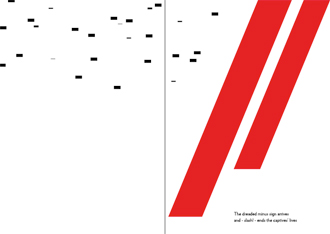 Other thoughts: Besides the obvious political nature of the text, I’ve envisioned this as a modern, contemporary conflict with visual allusions technology, machinery, war…Influences have been, amongst other things, the structures and rigour of letterpress and metal type, Russian posters of the 1920s and 1930s, the work of Werkman and modernists such as Weingart.